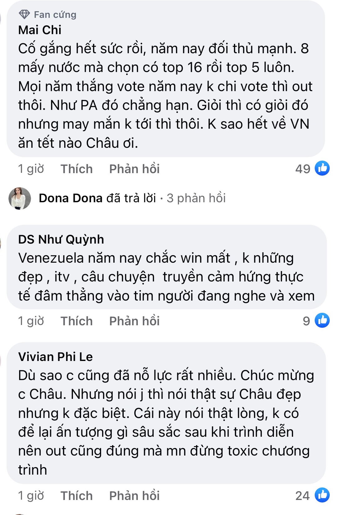 Sau khi kết quả Top 16 chính thức được công bố, fan sắc đẹp Việt tuy tiếc nuối nhưng đa số cho rằng chiến thắng của các đại diện intop là hoàn toàn thuyết phục. Ngoài ra, dân mạng cũng hài hước cho rằng có các thí sinh xuất sắc của Thái Lan, Philippines cùng trượt Top 16 nên Ngọc Châu cũng đỡ... buồn.