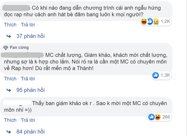 Nhân Kiệt Nguyễn nói: "MC thì được, nhưng với chương trình thực tế này thì nên lựa người dẫn chuyên môn về rap...".