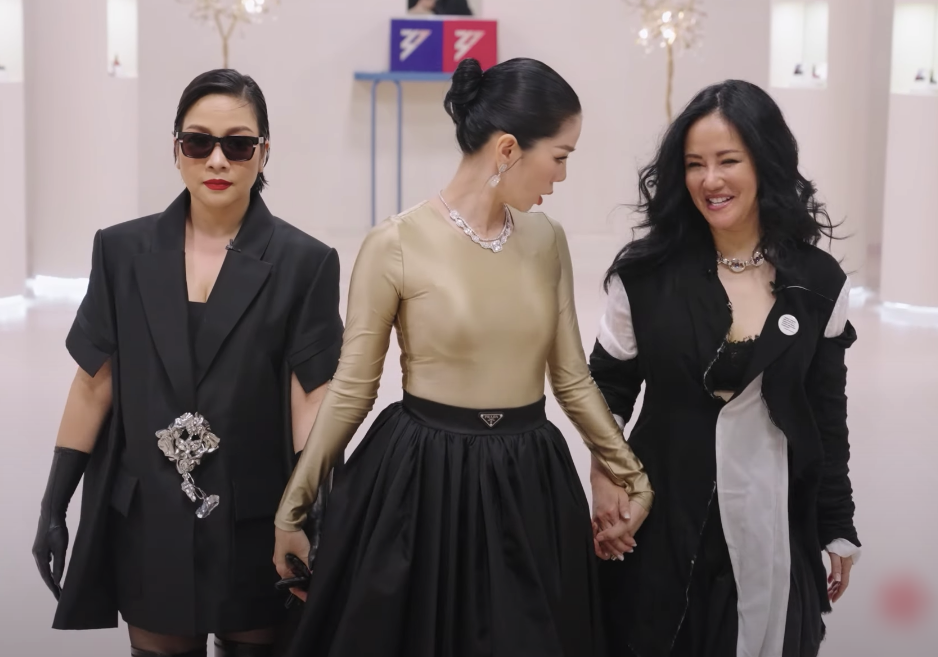 Tuy nhiên, nếu khán giả để ý kỹ thì sẽ nhận thấy khi bước vào cùng Hồng Nhung - Lệ Quyên, Mỹ Linh đã nhìn thấy phản ứng 'xịt keo' của Thu Phương. Lát sau, Mỹ Linh chia sẻ lý do Thu Phương không được xuất hiện chung cùng 3 'chị đại' vì: "Chị không được đứng cạnh bọn em đâu, tại vì chị cao quá".
