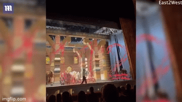 Ngay sau khi phát hiện ra vụ việc, các đồng nghiệp của anh Kulesh đã vội vàng hét thật to để các nhân viên phụ trách đạo cụ cho nâng chiếc phông nền lên. Vở kịch bị dừng lại ngay lập tức và người ta đã hạ màn trong chưa đầy 1 phút.
