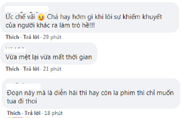 Trên mạng xã hội, nhiều khán giản bày tỏ họ muốn tắt tivi, muốn tua nhanh mỗi khi đến phân đoạn của nhân vật do Việt bắc đảm nhận. Thậm chí có khán giả còn trách đạo diễn, biên kịch đang 'tra tấn người xem', 'đem khuyết điểm của người khác ra làm trò hề'...