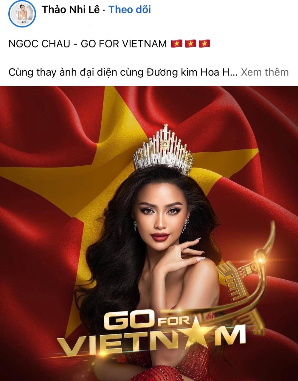 Bên cạnh đó, trên trang chủ của Miss Universe Vietnam (MUVN) đã đăng tải hình ảnh Ngọc Châu và kêu gọi mọi người cùng đổi ảnh đại diện để cổ vũ tinh thần đại diện nước nhà. Bức ảnh đính kèm dòng chữ "Go for Vietnam" (tạm dịch: Tiến lên Việt Nam), đằng sau để cờ đỏ sao vàng làm tăng tinh thần dân tộc.