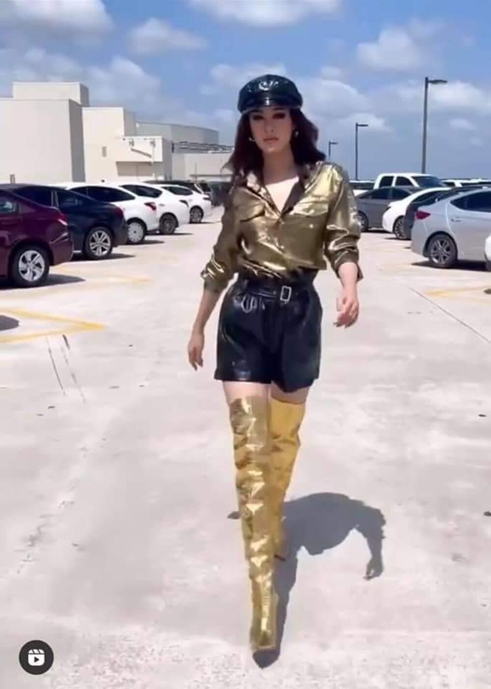 Thả dáng trong set đồ ánh vàng đồng mix cùng boots cao, người đẹp không chỉ ghi điểm bởi visual đỉnh cao mà còn do cách catwalk cực kỳ chuyên nghiệp.