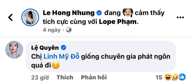 Mới đây, Lệ Quyên lại tiếp tục "khẩu chiến" cực căng thẳng với antifan. Lần này Lệ Quyên càng mất điểm khi đáp trả gay gắt antifan ngay trong bài đăng của Hồng Nhung.