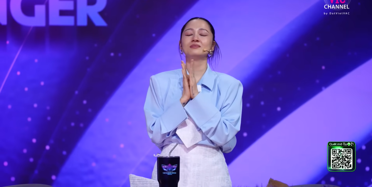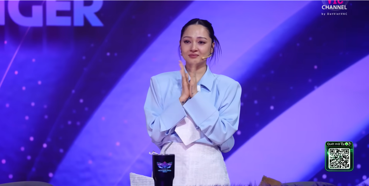 Cô lý giải về giọt nước mắt của mình với MC Ngô Kiến Huy: "Thứ nhất là giọng hát của bạn xúc động. Thứ hai là nãy giờ mọi người bàn về tình yêu. Em nhớ có người nói với em rằng là người ta không có xứng với em. Em nên có một người đàn ông tốt hơn để mà chăm sóc. Bạn quyết định rời bỏ. Nên em nghe bài này xúc động thôi".