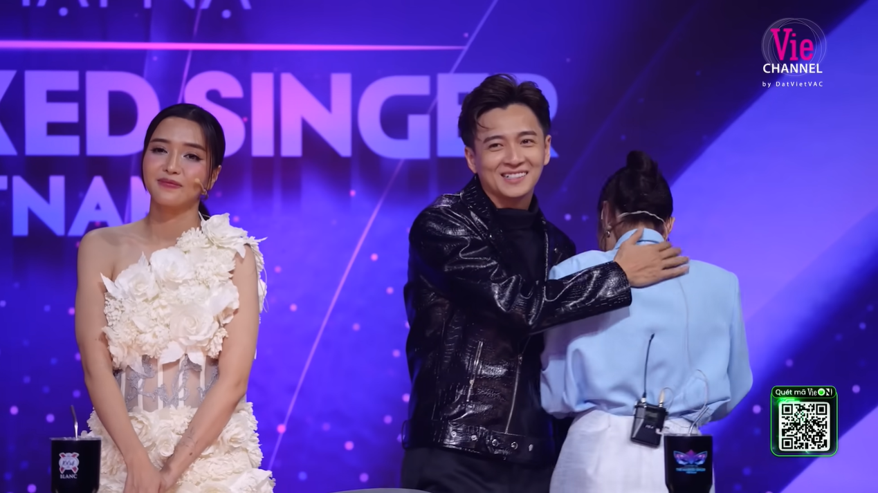 Từ phía sân khấu, Ngô Kiến Huy nhìn thấy những giọt nước mắt không ngừng rơi của Bảo Anh nên đã tiến đến dành cho đàn em một cái ôm an ủi.