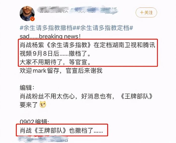 Những ngày gần đây, trên mạng liên tục lan truyền tin tức cho biết Dư sinh, xin chỉ giáo nhiều hơn do Dương Tử và Tiêu Chiến đóng chính bị hoãn chiếu dù rằng ngày lên sóng được công bố trước đó đã gần kề. Khi giới giải trí Hoa Ngữ đang được thắt chặt như hiện nay thì tin tức này dù chưa được xác nhận vẫn khiến fan thấp thỏm lo sợ.