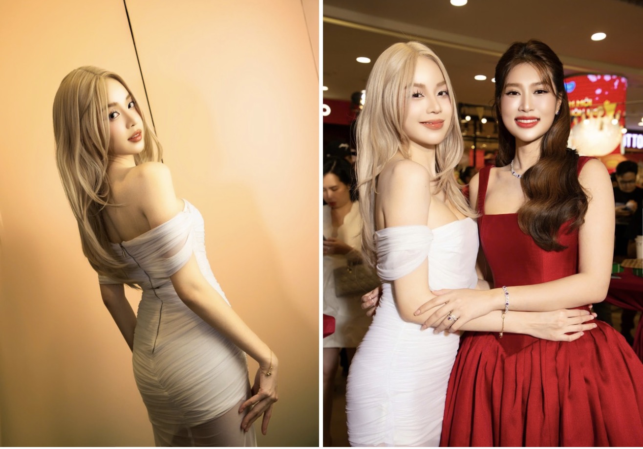 Tại buổi ra mắt, Thanh Thủy nổi bật với thiết kế vai trễ, bó sát tôn dáng. Chi tiết xuyên thấu giúp Hoa hậu Việt Nam 2022 khoe khéo đôi chân dài. Cô nổi bật với nước da trắng cùng kiểu tóc ấn tượng.