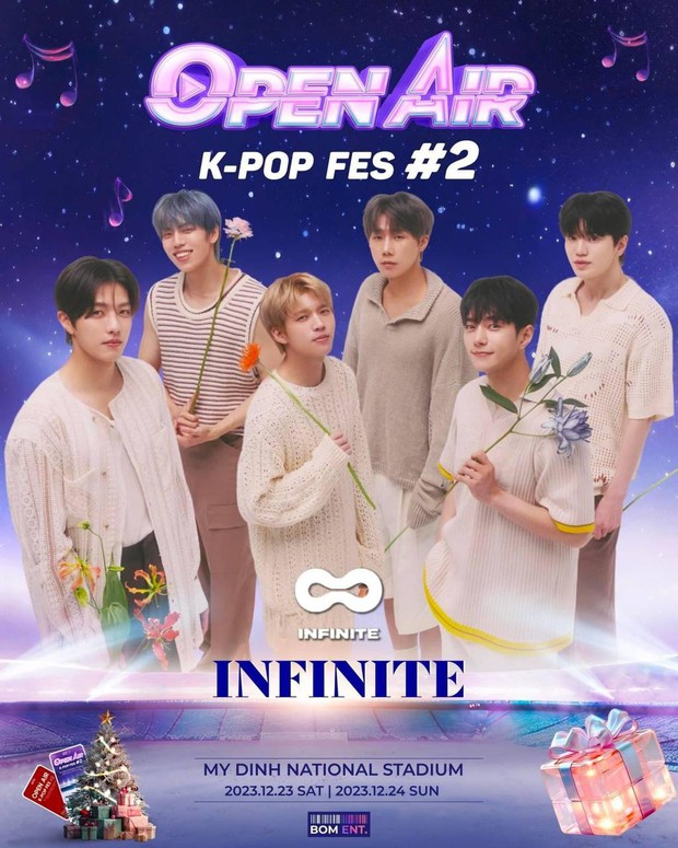 Mới đây, công ty chủ quản của nhóm nhạc Infinite đăng tải thông tin trên trang Facebook chính thức về việc không tham gia biểu diễn tại chương trình Open air #2 Kpop festival ngày 23/12 diễn ra tại Mỹ Đình - Hà Nội.