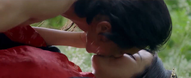 Ở phim Kiều, Hoạn Thư (Cao Thái Hà) có 3 đoạn diễn cảnh nóng gây đỏ mặt. Cảnh đầu tiên là "tự xử" sau khi tận mắt chứng kiến chồng mình - Thúc Sinh (Lê Anh Huy) gần gũi cùng Kiều (Trình Mỹ Duyên) trên đồng cỏ.