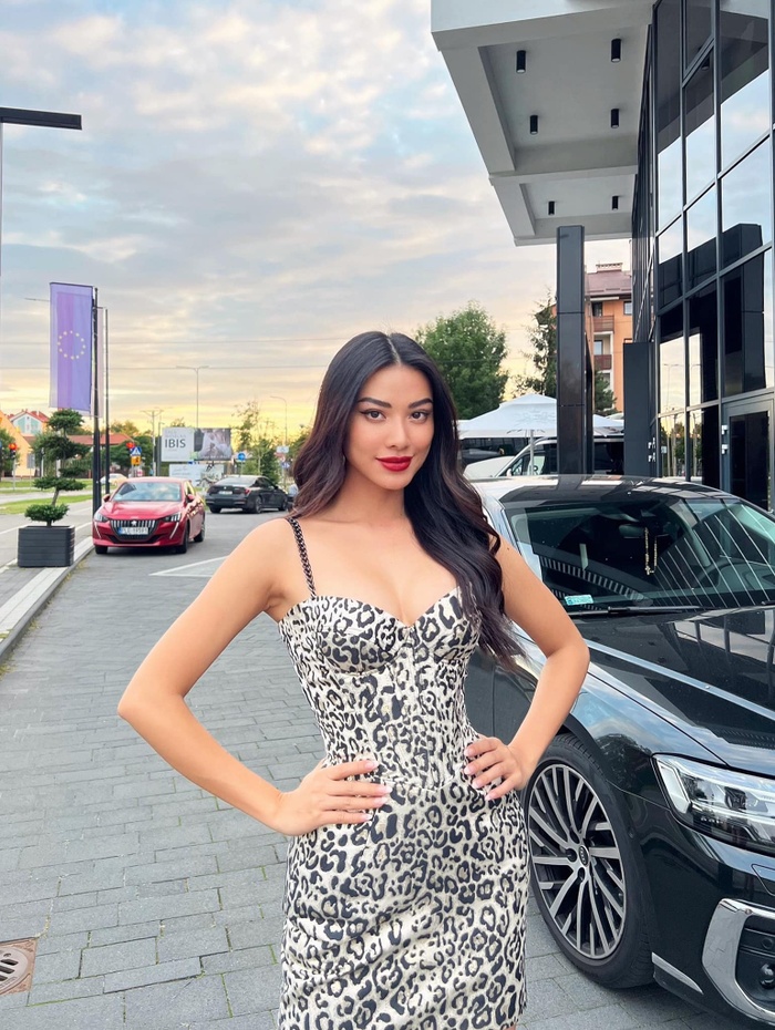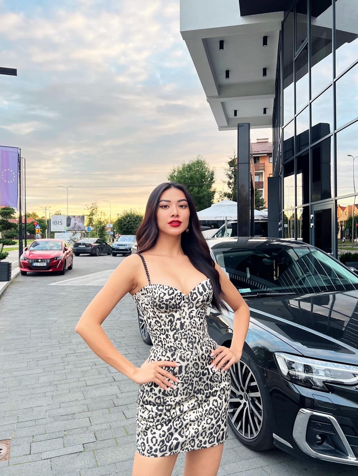 Mới đây, người đẹp diện layout chặt chém đọ sắc cùng đương kim Miss Supranational Chanique Rabe. Bộ váy ngắn họa tiết da báo giúp Kim Duyên khoe được body khỏe khoắn. Kiểu tóc buông xõa cùng son môi đỏ rất phù hợp với đại diện Việt Nam. Fan hi vọng cô giữ visual này cho đêm thi quan trọng sắp tới.