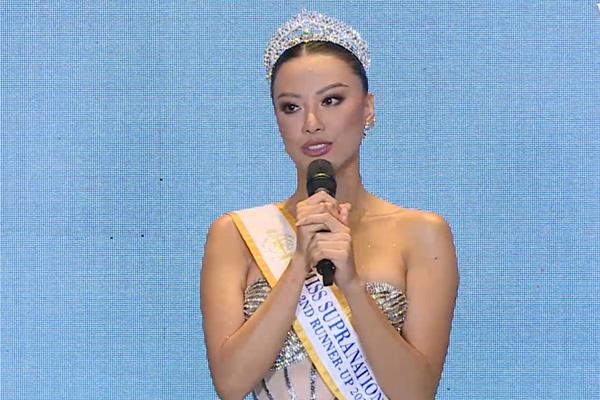 Nói về sự cố trong phần thi Supra Chat, Á hậu 2 Hoa hậu Siêu quốc gia cho biết BTC Hoa hậu Siêu quốc gia cũng trấn an Kim Duyên đang làm rất tốt và động viên cô đừng để tiêu cực lấn át. Cô chia sẻ dù tỏ ra cứng rắn bên ngoài nhưng không kìm được nước mắt khi nhận được cuộc gọi quan tâm từ gia đình.