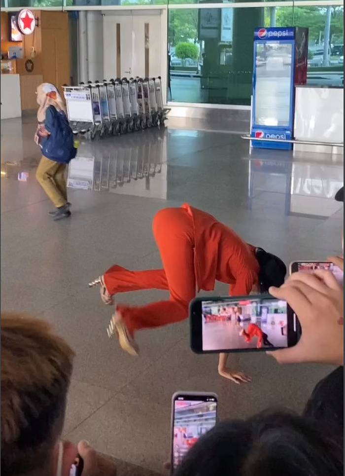 Đặc biệt, Ngọc Châu từng có lời hứa độc đáo là sẽ lộn mèo mừng chiến thắng tại sân bay nếu Kim Duyên đươc xướng tên cho vị trí top 3 chung cuộc. Không quên lời hứa, Ngọc Châu đã thực hiện màn nhào lộn vụng về nhưng đầy hài hước.