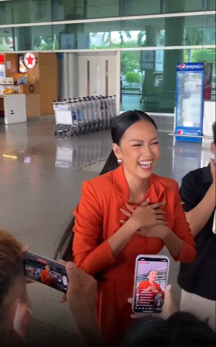 Xuất hiện tại sân bay, Kim Duyên hạnh phúc khi được người hâm mộ, gia đình và cả đại gia đình Hoàn vũ vây kín. Hai "trò cưng" của Kim Duyên là Ngọc Châu và Thủy Tiên ra tận sân bay đón nàng Á hậu. Tại sân bay, Thủy Tiên và Ngọc Châu đều vui mừng khi gặp lại mentor của mình.
