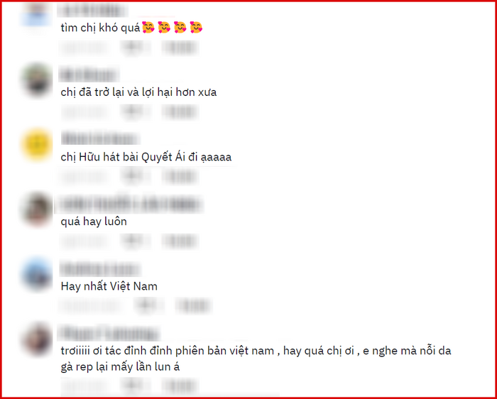 Bên dưới đoạn clip, đông đảo cư dân mạng đã để lại nhiều bình luận khen ngợi giọng hát live ngày một đẳng cấp của Lương Bích Hữu. Không những vậy, vì quá "u mê" giọng hát của nữ ca sĩ mà không ít cư dân mạng đã để lại yêu cầu mong muốn Lương Bích Hữu sẽ cho ra thêm nhiều bản cover các ca khúc tiếng Trung nổi tiếng khác.