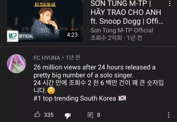 10/01/2021 15:15Knet tố fan Việt giả làm người Hàn Quốc để bình luận hết sức 'giả trân' dưới MV Hãy Trao Cho Anh của Sơn Tùng M-TP?