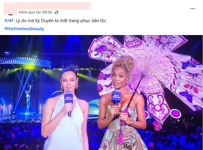 Hậu Chung kết, ngoài những tiết mục của Kỳ Duyên thì một chi tiết cũng khiến nhiều người quan tâm chính là hình ảnh nữ MC Zuri Hall đã dùng chiếc lộng bướm của đại diện Việt Nam để nhắc về phần thi Trang phục dân tộc. Chi tiết Việt Nam thành "ngoại lệ", ưu ái này được lan truyền với tốc độc chóng mặt trên mạng xã hội. Nhiều người bày tỏ sự tự hào vì Trang phục dân tộc của Việt Nam đã gây ấn tượng mạnh với bạn bè quốc tế. Một số netizen còn "chế ảnh", trêu đùa rằng cuối cùng đã biết lý do Kỳ Duyên bị lạc mất trang phục trước đó mấy ngày, hóa ra là do nữ MC mượn để dẫn chương trình.