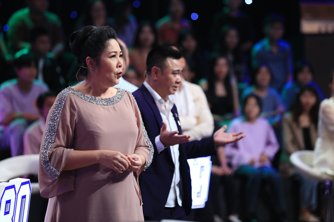 Khi bị các nghệ sĩ khác "đe dọa" khoảnh khắc này sẽ lên sóng truyền hình, NSND Hồng Vân không ngại tiết lộ: "Chồng tôi ở nhà còn yêu anh Lại Văn Sâm hơn cả tôi" khiến mọi người cùng bật cười.