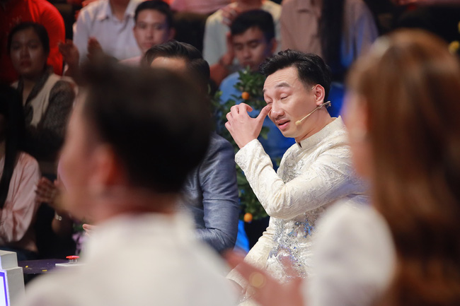 Chứng kiến cảnh Thành Trung bật khóc, MC Lại Văn Sâm cũng rưng rưng. Ông không nói gì mà chỉ bặm môi để ngăn dòng cảm xúc dâng trào. Nhìn Thành Trung rồi gật gù tỏ rõ sự cảm thông, có thể thấy trong tình huống này, MC Lại Văn Sâm đã rất xúc động.
