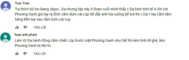 Chưa kể, đến cuối chương trình, Phương Oanh còn bị Lâm Vỹ Dạ hành xử hơi thiếu tinh tế. Trong lúc cô đưa tay ra định cầm cúp hộ chàng trai được giải, Lâm Vỹ Dạ lại tiện tay cầm luôn trước cô.