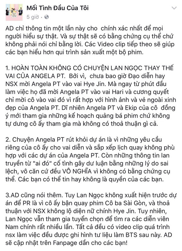 Tuy nhiên, thực chất Ninh Dương Lan Ngọc không hề cướp vai của Angela Phương Trinh. Cả hai nữ diễn viên đã được nhà sản xuất nhắm cho hai vai khác nhau, và Chi Pu mới là người thay thế Trinh sau đó. Chính Ngọc cũng đã từng trả lời phỏng vấn rằng mọi tin đồn "giật vai đàn em" đều là vô căn cứ vì Ngọc không giật cái gì của ai, còn thời điểm đó Trinh lại không có phát ngôn gì thêm.