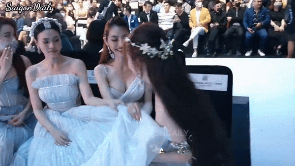 Mới đây, fan sắc đẹp chia sẻ đoạn video ghi lại hành động đẹp của Ninh Dương Lan Ngọc dành cho 2 nghệ sĩ ngồi kế bên Linh Chi và Ngọc Trinh.