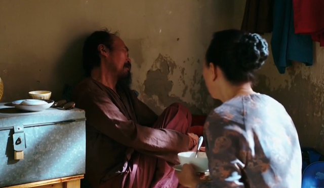 Về xóm trọ, bà Thu chủ trọ mang cháo sang động viên ông Ẩn phải sống vì con. Nếu ông chết đi con gái ông sẽ không có người thắp cho một nén hương vào ngày rằm, mùng 1, như thế sẽ cô quạnh lắm.