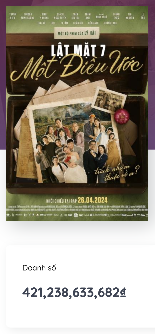 20/05/2024 18:43Lật Mặt 7 đạt mốc 421 tỷ, chính thức lật đổ Bố Già của Trấn Thành