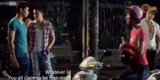 Bữa đó nguyên dàn quần chúng không ai dám hôn môi hết. Đạo diễn mới bảo ai dám hôn môi thì cho 200 ngàn. Tôi lập tức xung phong đóng cảnh hôn đồng tính đó để lấy 200 ngàn.