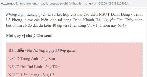 Những Ngày Không Quên phát sóng lúc 21h từ thứ 2 đến thứ 6 hàng tuần trên VTV1.