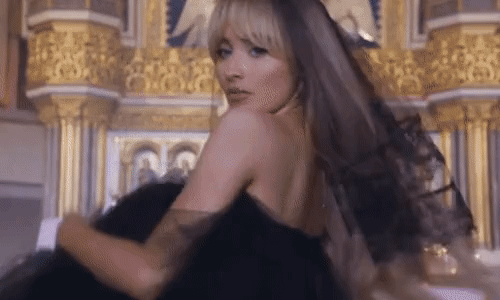 Video 11 triệu lượt xem có cảnh nữ ca sĩ tóc vàng mặc chiếc váy đen siêu ngắn và đeo mạng che mặt uốn éo trước 4 chiếc quan tài dựng thẳng đứng bên trong thánh đường.
