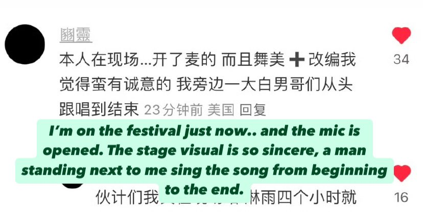 Ngoài ra, một số khán giả Trung Quốc đang làm việc tại Mỹ cũng để lại bình luận bênh vực Lisa. Một người nhận định: “Tôi đang ở lễ hội ngay bây giờ và mic đang được mở. Hình ảnh sân khấu rất chân thật. Một người đàn ông đứng cạnh tôi đã hát theo cô ấy từ đầu tới cuối”.