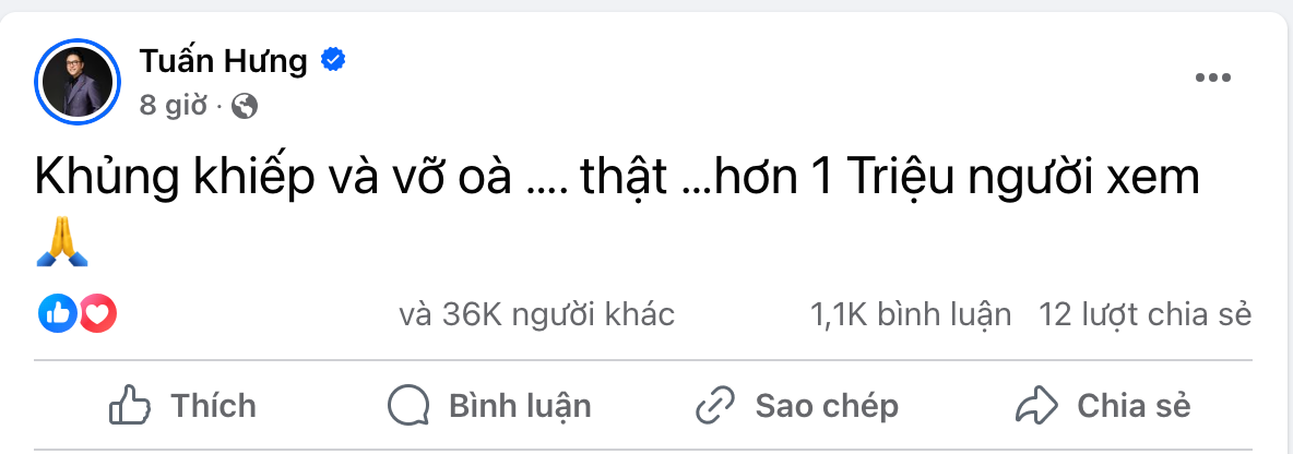 Trên trang cá nhân, Tuấn Hưng cũng không khỏi sốc khi thông báo đã có hơn 1 triệu người theo dõi đêm liveshow. Tại đêm diễn khi chia sẻ với Duy Mạnh, Tuấn Hưng cũng thừa nhận kênh YouTube của anh chưa từng ghi nhận con số hơn 100 nghìn người xem công chiếu trực tiếp. Tại kênh YouTube của Duy Mạnh, có thời điểm cao nhất ghi nhận hơn 180 nghìn người xem trực tiếp.