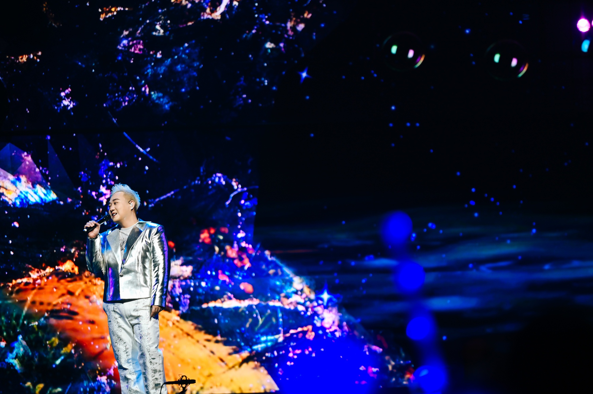 Mở màn với Love, Trung Quân khiến khán giả vỡ oà vì màn xuất hiện cực kỳ hoa mỹ với "cánh bướm" sắc màu rực rỡ.