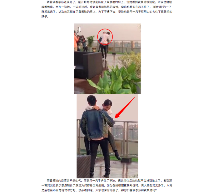 Trong loạt ảnh được tung ra, Hoàng Cảnh Du nhấc bổng bạn diễn nữ một cách nhẹ nhàng lên hông mình. Cảnh tượng Lý Thấm - Hoàng Cảnh Du nhìn nhau trong tư thế ôm ấp khiến không ít người đỏ mặt.