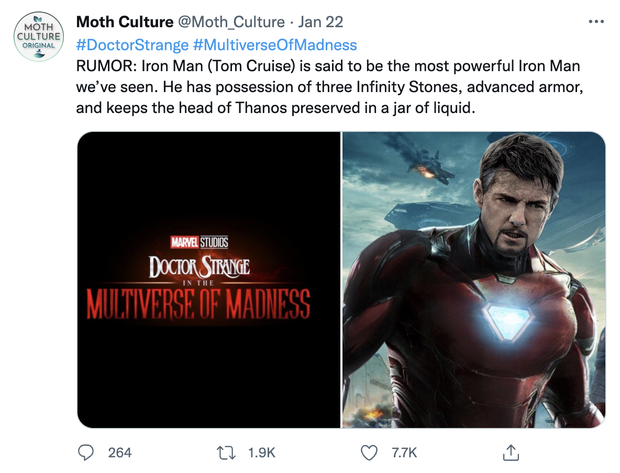Cùng với đó truyền thông cũng đưa tin, Tom Cruise được cho là sẽ vào vai Iron Man mới trong "Doctor Strange 2". Dự kiến phần mới này sẽ ra mắt vào tháng 5 năm nay.
