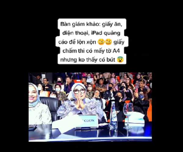 Cụ thể trong đoạn clip được lan truyền, bàn chấm điểm của ban giám khảo trông rất bừa bộn.Giấy chấm điểm cũng trống trơn không được ghi chép gì, ngay cả một chiếc bút cũng không xuất hiện trên mặt bàn. Chiếc máy tính bảng chấm điểm cũng hiển thị quảng cáo. Điều này khiến không ít người nghi ngờ rằng kết quả cuộc thi đã có từ trước, sự xuất hiện của ban giảm khảo chỉ để... làm cảnh?