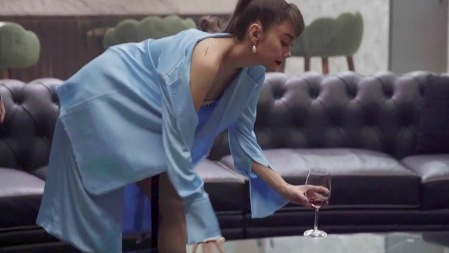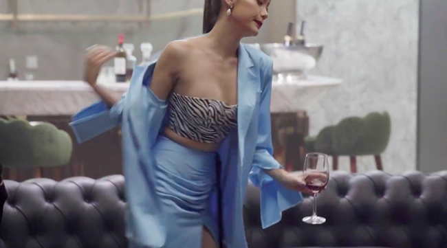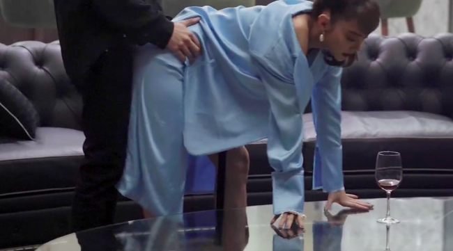 Trong đoạn clip này, đáng chú ý có cảnh Minh Hằng ăn mặc gợi cảm, cố ý "lột nhẹ" chiếc áo khoác ngoài để lộ đường cong cơ thể bên trong. Khi Minh Hằng cúi người xuống, 1 người đàn ông ăn mặc sang trọng đã tiến đến ôm hông cô từ phía sau. Tư thế đứng của Minh Hằng và người đàn ông này cực kỳ nhạy cảm, xem qua đã khiến khán giả phải đỏ mặt.