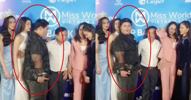 Chuyện là ngay trên thảm đỏ, cô cùng dàn Hậu đứng tạo dáng chụp hình thì bỗng có những nhân vật khác chạy lên xin chụp chung. Điều này sẽ chẳng có gì đáng nói nếu nhân vật nam to lớn không vô tình đứng lấn chỗ Đỗ Mỹ Linh, thậm chí "chèn ép" đến nỗi cô trở nên khó xử và bị che lấp mặt. Thậm chí, trong một giây, chân dài quay sang nhìn đàn em Tiểu Vy với ánh mắt khó xử và sau đó gương mặt mất hẳn nét cười trong suốt thời gian chụp hình.