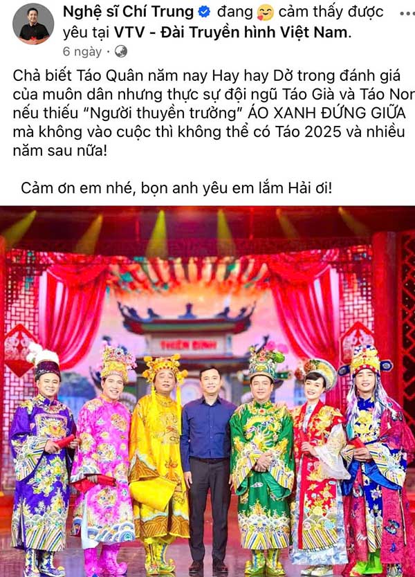 Cứ mỗi dịp Tết đến Xuân về, khán giả Việt Nam lại mong chờ đến đêm Giao thừa để theo dõi chương trình Gặp Nhau Cuối Năm (Táo Quân). Kịch bản Táo Quân thường mang những vấn đề nổi bật trong năm, lời thoại hài hước, sâu cay, lồng ghép nhiều thông điệp xã hội đáng suy ngẫm. Sau khi Táo Quân 2025 lên sóng, khán giả dành lời khen khi các thông tin về chính sách kinh tế, các vấn đề giao thông, giáo dục, văn hóa và những thay đổi trong cơ chế quản lý được truyền tải rất duyên dáng, gần gũi trên sân khấu. Các nhân vật Táo quen thuộc đã không làm khán giả thất vọng, những diễn viên mới cũng đã bắt đầu tạo được ấn tượng với khán giả.