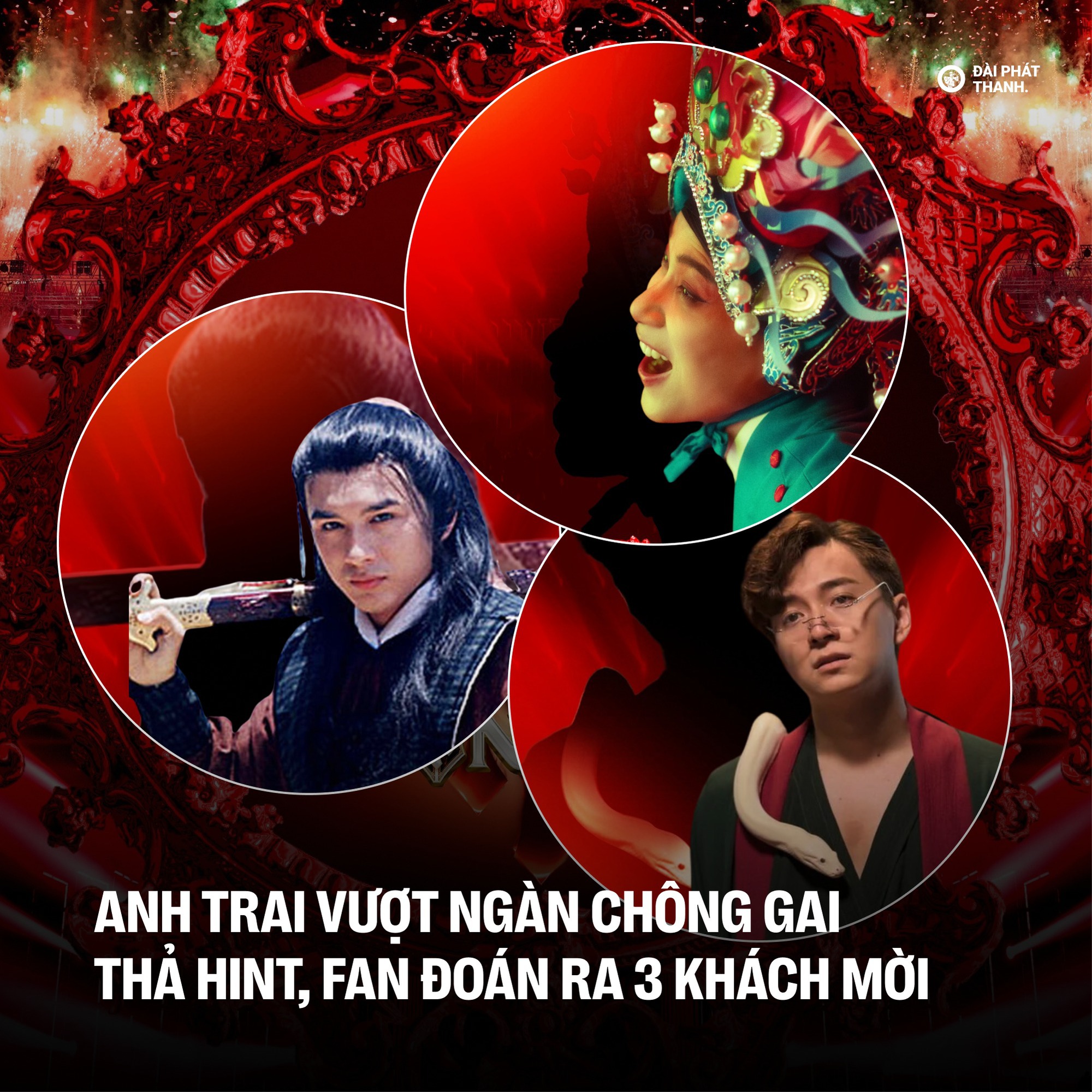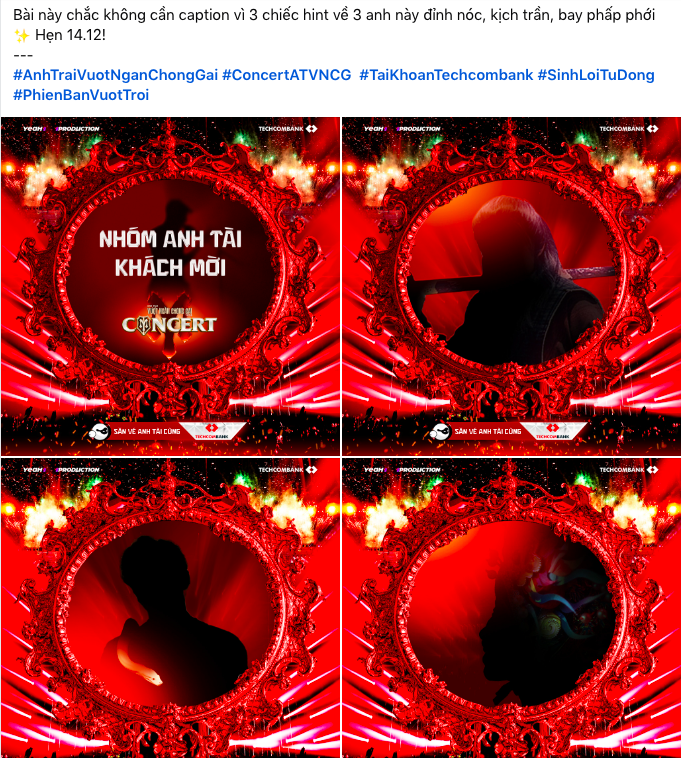 Ngày 30/11, NSX tung hint cho khán giả dự đoán 3 khách mời sẽ biểu diễn tại concert Anh Trai Vượt Ngàn Chông Gai tới đây. Không khó để dân tình kiếm ra manh mối, trả lời chính xác câu đố của NSX. 3 khách mời sẽ góp mặt trong concert sắp tới bao gồm Trúc Nhân, "anh Bo" Đan Trường và Ngô Kiến Huy. Thông tin khiến dân tình vô cùng hứng thú.