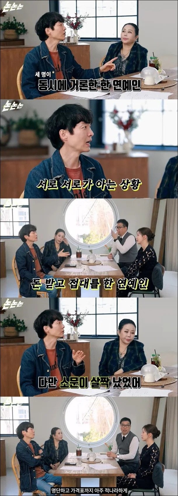 Nghệ sĩ Kang Byung Kyu tiếp tục: "Thậm chí còn có danh sách lưu hành rõ tên và giá cả của các ngôi sao". Họ cũng kể chuyện 1 doanh nhân Trung Quốc từng chi 2 tỷ won (36,5 tỷ đồng) để sắp xếp 1 cuộc gặp gỡ với sao nữ nổi tiếng Hàn Quốc.