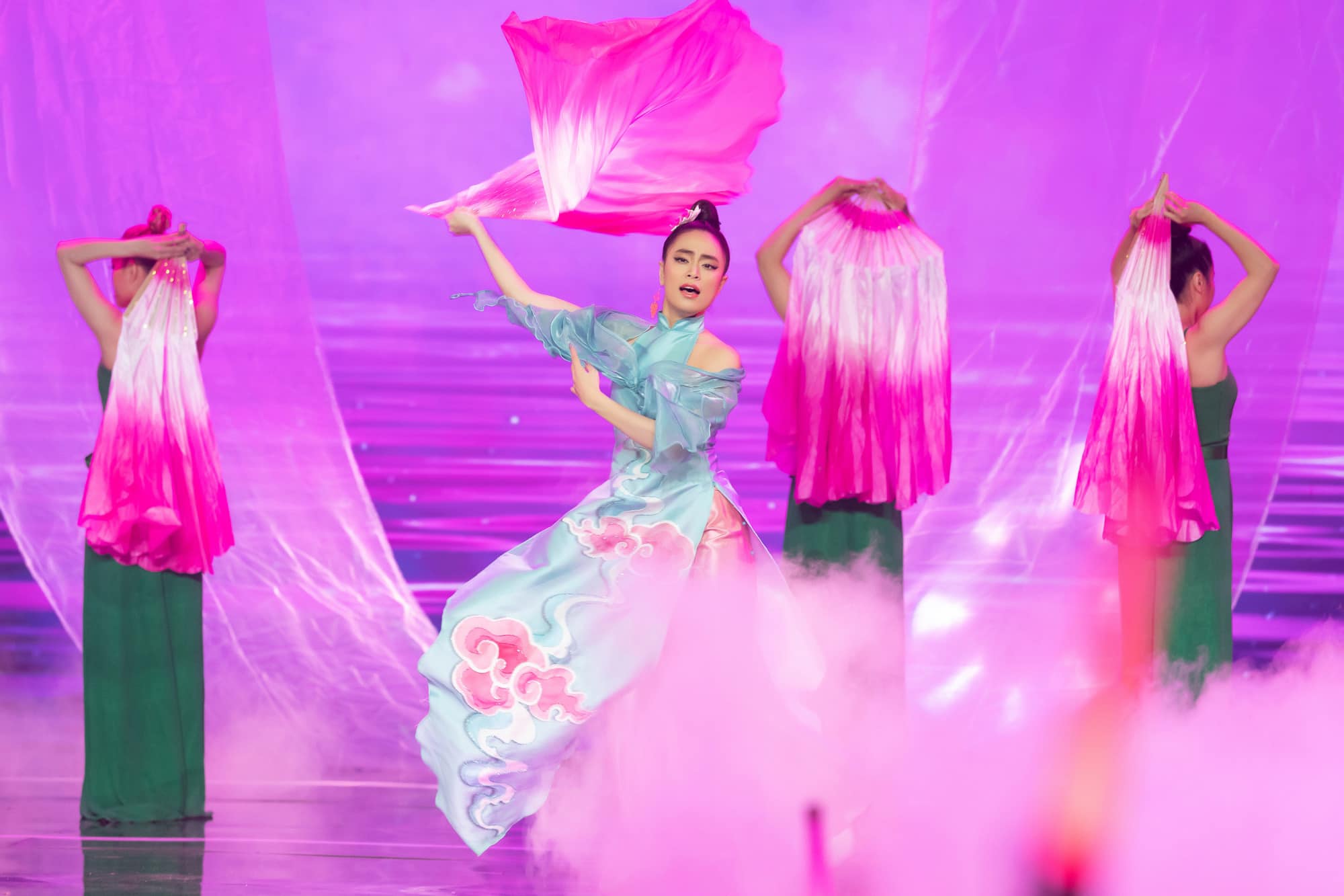 Mỗi tiết mục đều được nữ ca sĩ đầu tư, dàn dựng vô cùng công phu. Trang phục, makeup phù hợp từng ca khúc khiến người xem cảm giác như được thưởng thức liveshow của Hoàng Thùy Linh.