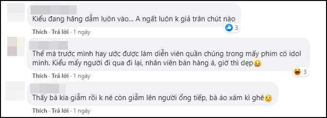 Nhìn thấy người thanh niên đóng cameo bị ai nấy giẫm qua người, cư dân mạng không khỏi cảm thấy xót xa. Một số người cũng chia sẻ những gì mình từng nghe được về công việc của những diễn viên quần chúng, thậm chí còn được phân chia cấp bậc. "Tôi nhớ từng xem trong một phim TVB, lương của diễn viên quần chúng không giống nhau, kiểu như lương cơ bản 2000, bị tát thêm 3000, bị đá thêm 5000, nhảy sông thêm 7000, nhảy lầu thêm 10.000,...". Ngoài ra, một số netizen còn nhắc đến Vu Chính - vị biên kịch thị phi nhưng lại được cho là đối xử với diễn viên quần chúng rất tốt, phần ăn trưa còn có thêm đùi gà để tẩm bổ.