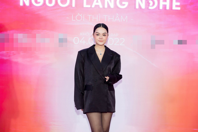 Phạm Quỳnh Anh thu hút sự chú ý khi diện đầm vest đen rộng trong sự kiện sau tin đang mang thai với bạn trai kém tuổi. Trước những nghi vấn, cô từ chối chia sẻ về chuyện riêng. "Tôi chỉ muốn khán giả biết tới mình qua các dự án nghệ thuật thay vì chuyện đời tư", cô nói.