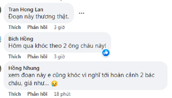 Trên MXH, nhiều khán giả bày đỏ phân đoạn xúc động của hai bác cháu đã lấy đi nhiều nước mắt của người xem.