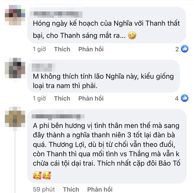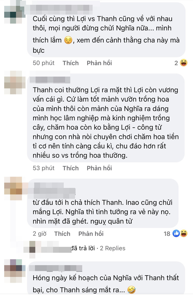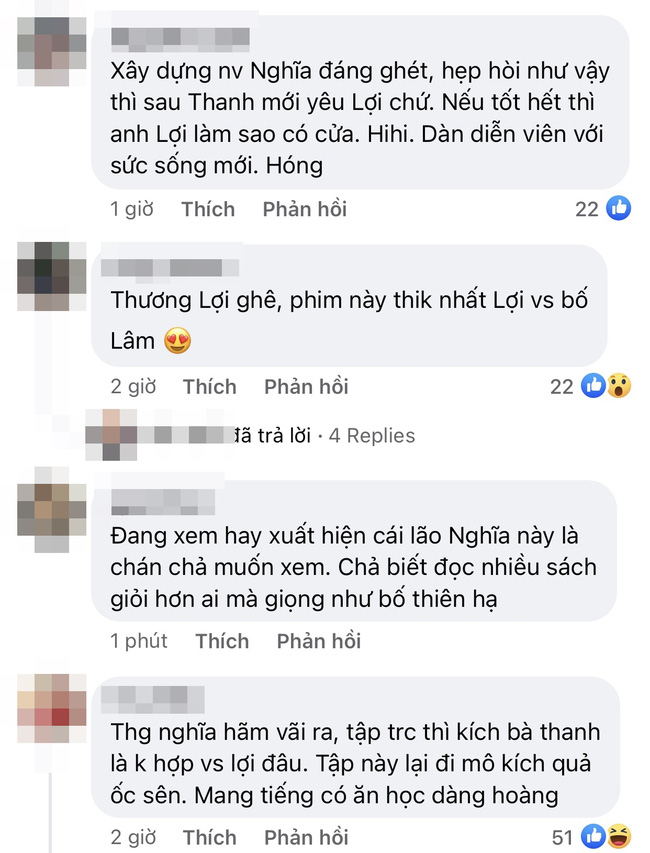 Trên MXH, khán giả tỏ ra bức xúc với nhân vật Nghĩa và cả nữ chính Thanh. Nhiều ý kiến cho rằng nhân vật Nghĩa đáng ghét, hẹp hòi, ích kỷ, cứ nghĩ mình có chút chữ nghĩa nên coi thường người khác. Một số khán giả lại chỉ trích nữ chính Thanh quá định kiến với Lợi, suốt ngày mắng mỏ mà không để tâm tới cảm xúc của người khác.