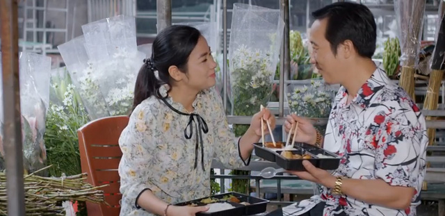 Nghĩa ra chỗ chị gái bán hoa và chứng kiến chị chăm sóc cho ông Lâm, hai người cùng nhau ăn cơm hộp vui vẻ ngay tại chợ, ánh mắt cả hai đều rạng ngời hạnh phúc.