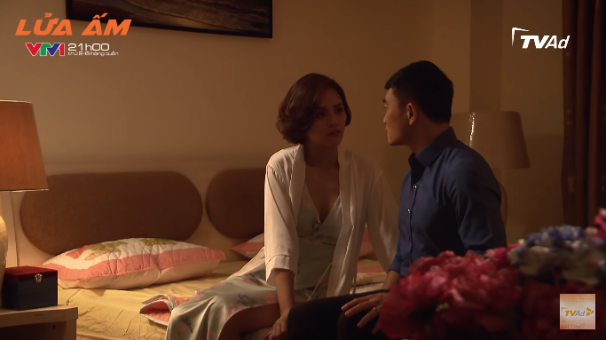 Trong phong ngủ, Ngọc mặc chiếc váy vô cùng sexy cố tình tiến sát gần Minh nói, cô ta muốn con giống bố. Khi thấy Ngọc có ý gần gũi và có ý định hôn mình, Minh cũng không hề tỏ thái độ né tránh.