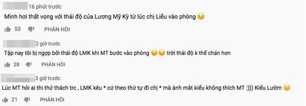 Khi Minh Tú hỏi các thí sinh đội Hoàng Thùy ai sẽ là người bốc thăm câu hỏi ứng xử trước, netizen để ý Lương Mỹ Kỳ đã trả lời kèm theo cú lườm nguýt "Thuý Liễu": "Cứ theo thứ tự đi chị".